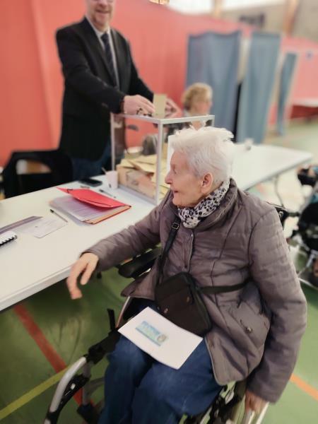 Avec fierté, notre animatrice, également référente du vote, a accompagné les votants aux urnes.